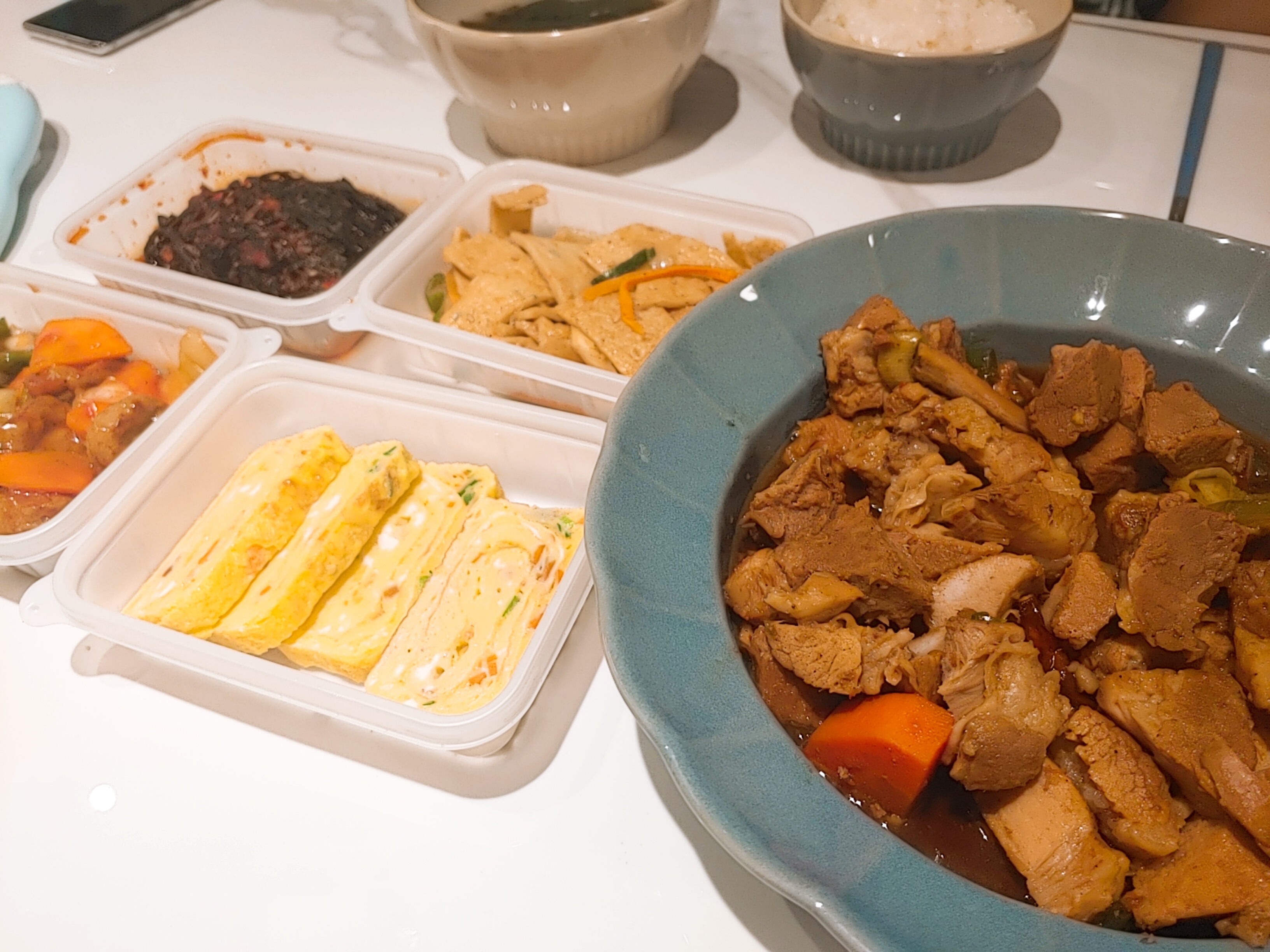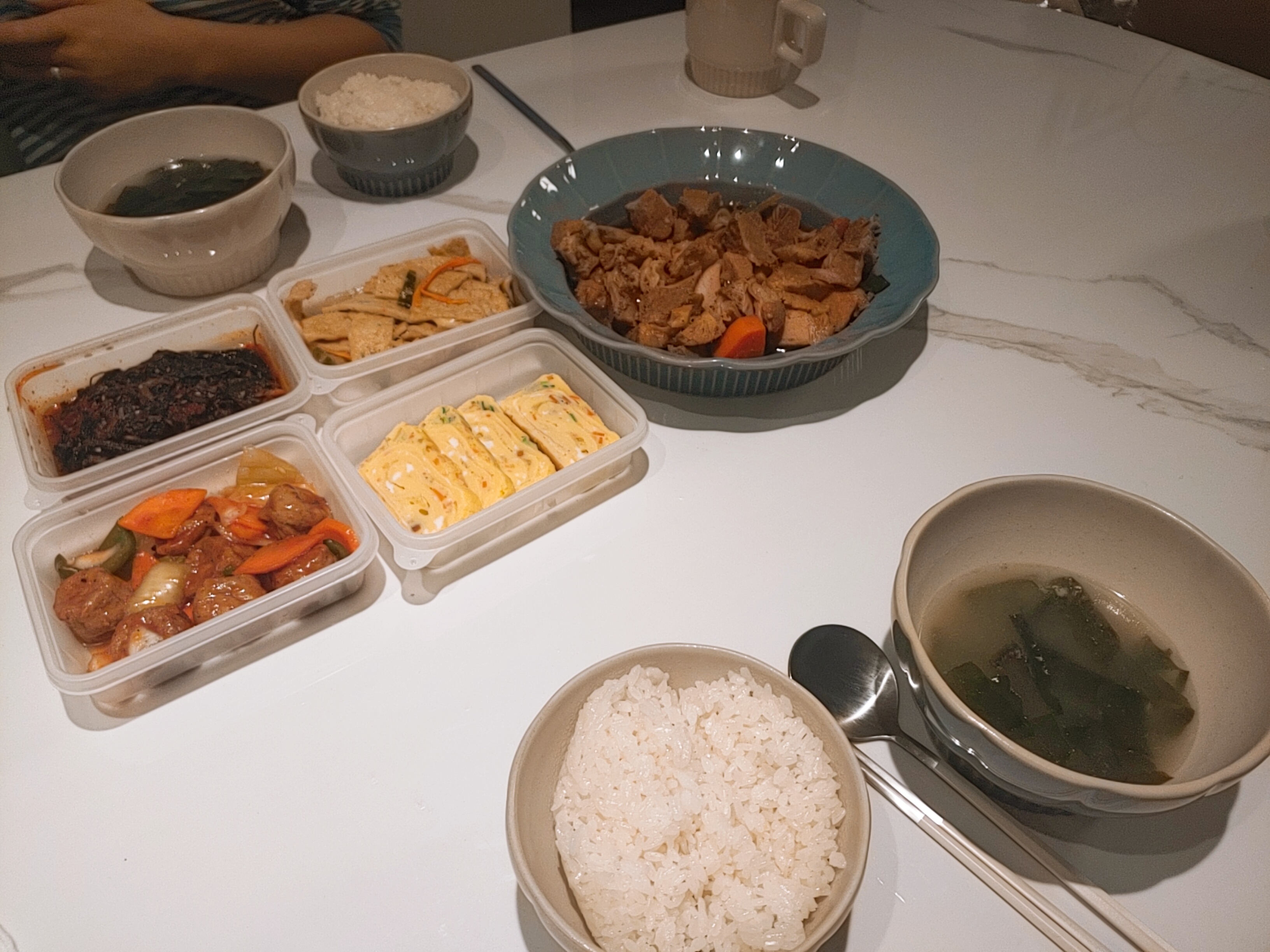돼지갈비찜은 처음 왔을때는 큰 덩어리가 많아서 후라이팬에 데우면서 한입 크기로 썰어서 먹었는데 양도 많고 맛있어요. 나머지 반찬도 다 무난무난한데, 고들빼기 무침이 특히 맛있더라구요.